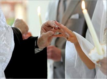 Die Verlobungsringe des Brautpaars werden zuvor auf den Altar der Kirche als ihrer heiligsten Stelle gelegt und dadurch geweiht.