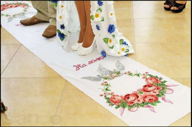 • Weißes Leinen oder Tuch, das unter die Füße der sich Vermählenden gelegt wird (Handtuch).